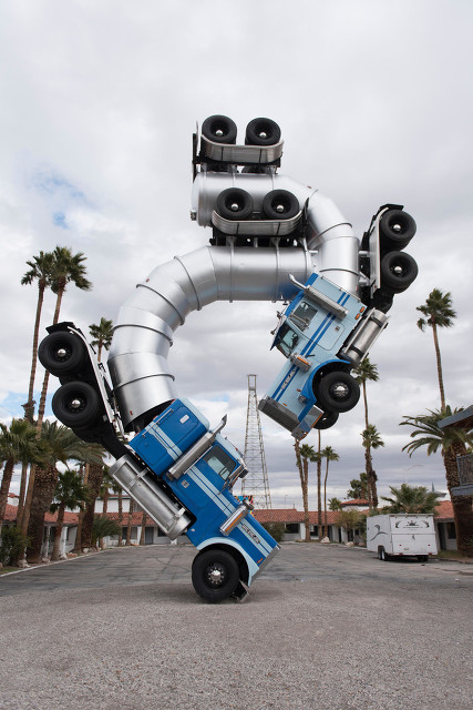 Mike Ross是一位以大规模公共艺术项目著称的美国雕塑家,他在2015滨海韦斯顿班克斯的Dismaland展出的这件“连环翻车现场”作品,是由两个废弃油罐卡车拆分重组而成的。