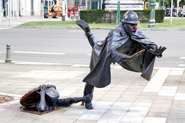 Tom Frantzen的杰作——狙击者雕像,这个雕像虽小,但被排进了世界25座震撼雕像之中,雕像位于布鲁塞尔通往圣心教堂的途中,不在意很容易错过。这是一座非常具有幽默感和故事性的雕像,看到他,就让人想起许多喜感的CP,比如“福尔摩斯和华生”等。