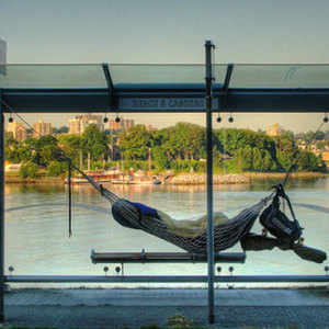 在加拿大的温哥华有个吊床公交站,虽然看起来不是特别牢固,但是悠闲的午后,美景诱惑当前,困了就躺着睡会儿吧。车来了?没关系啦,让我再躺一会儿。