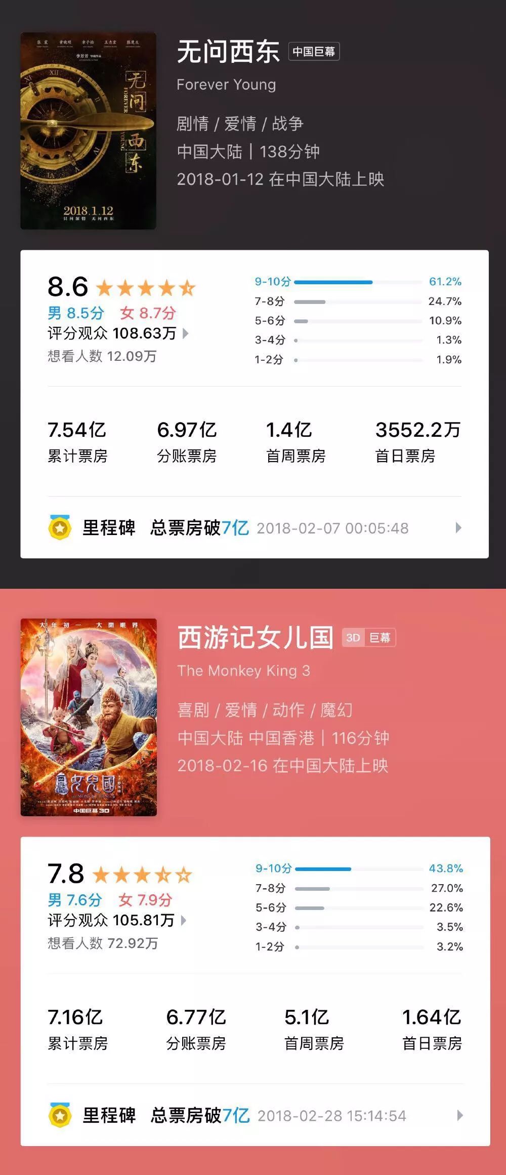 在电影投资、制作领域,幸福蓝海从2009年就已涉足,也曾参与投资出品《建国大业》《让子弹飞》《长江七号》《辛亥革命》等优秀影片。在2012年凭首部主控影片《白日焰火》拿下过亿票房并获得柏林电影节最佳影片奖,在2018年,除了票房不俗的《无问西东》《西游记女儿国》,《时代狂人》也预计在今年上映,还有《假如没有遇见你》《昆仑决》《两个人的海岛》等项目也在推进中。只是,对于缺乏好项目,在主控影片上也缺少运作大制作影片经验的幸福蓝海,品牌美誉度及票房号召力都有待提高。