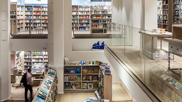 这家书店的名字,叫做“最后一家书店”。像仓库一样的这家书店,不仅出售,也收购新书或旧书,同时还有漫画小说和唱片。书店圆柱型的陈列非常奇特,《时尚先生》杂志的封面,就曾以它取景作背景。