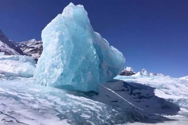 紧邻然乌湖的来古冰川,呈现了水的静态美。来古冰川为一组冰川的统称,是世界三大冰川之一,包括美西、亚隆、若骄、东嘎、雄加和牛马冰川。从远古时期开始,这一系列冰川纵使经历了数千年的风雨,仍巍然屹立,独享一方天地。