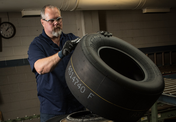 在这里,工人用延续百年的手工技艺制造着一种特殊的鹰驰轮胎(Eagle),后者以被应用于全球知名的NASCAR赛事而广为人知。