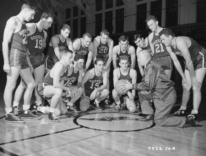 实际上,早在1918年固特异工厂首次实现24小时生产轮胎时,该公司的员工便自发组成了一支篮球队。这支名为“飞足”的队伍也是世界上历史最悠久的篮球队之一。1930年代,由10家美国大型企业组成的美国国家篮球联盟(NBL)中就包括这支队伍。1949年,NBL与新成立三年的美国篮球协会(BAA)合并为美国国家篮球协会,也就是今天为全球所熟知的NBA。只不过由于“飞足”队的大量成员在1940年代投身第二次世界大战,当NBA正式成立时,这支篮球队并没有位列其中。