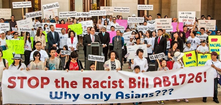 但是1990年代中期以后,随着来自中国大陆和印度的移民数量攀升,并逐步在教育和经济资源中取得优势地位,其他弱势亚裔群体内心产生不平衡,转而要求与华裔、印度裔等剥离,转入“缺乏足够关注的少数族裔”(underrepresented minorities),像非洲裔、拉丁裔那样,享受特殊资源照顾。
