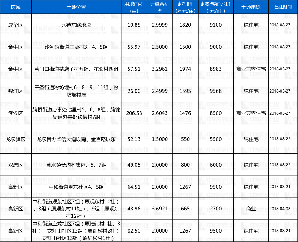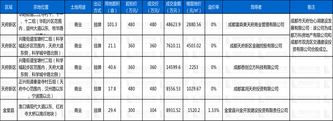 本周土地成交 来源:成都中成房业