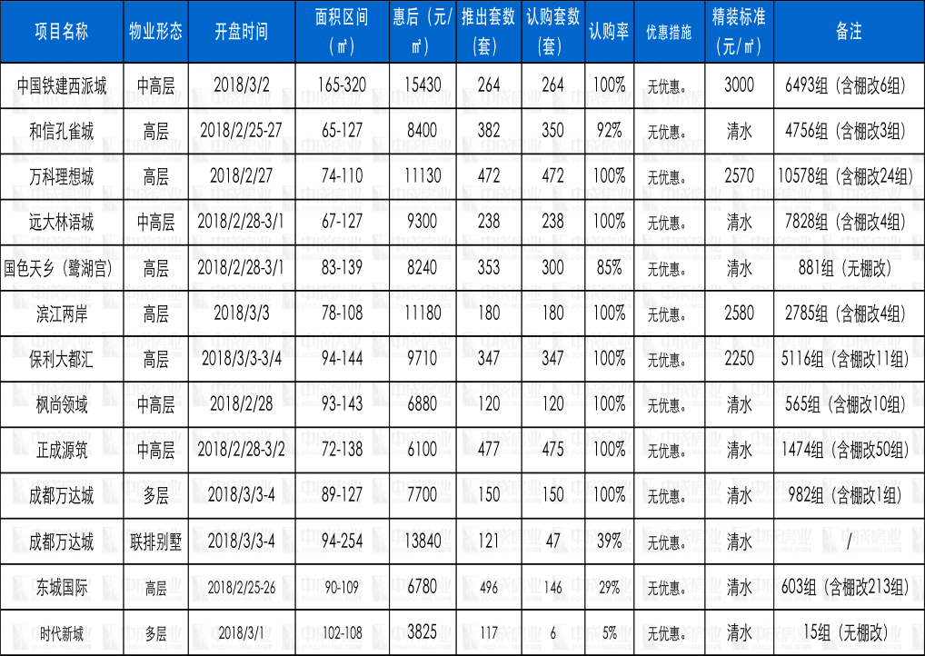 本周开盘 来源:成都中成房业