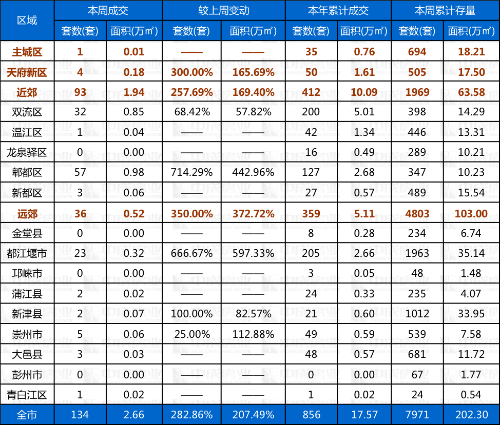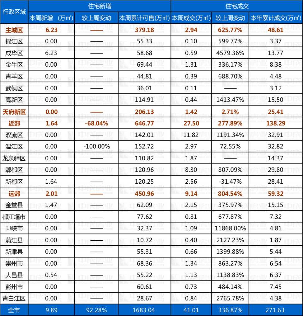 本周住宅供销来源:成都中成房业