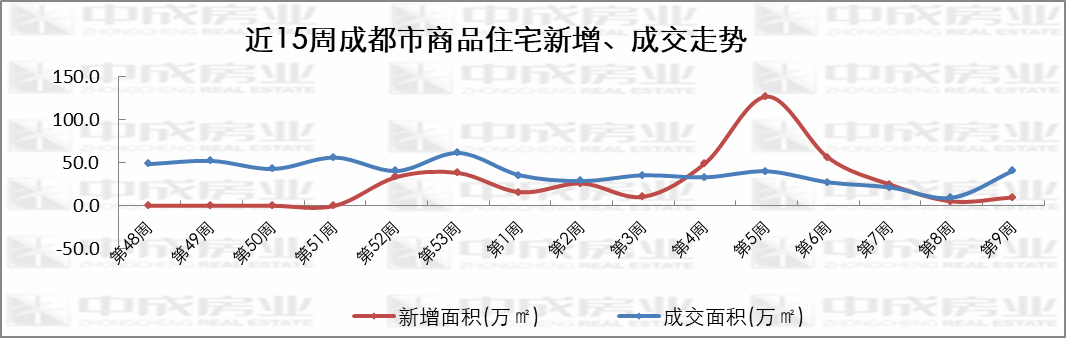 近15周住宅市场走势来源:成都中成房业