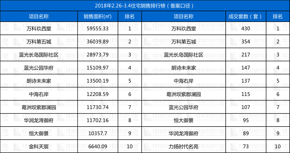 本周住宅成交排行来源:成都中成房业