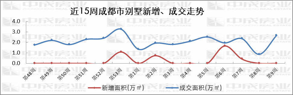 近15周别墅市场走势来源:成都中成房业
