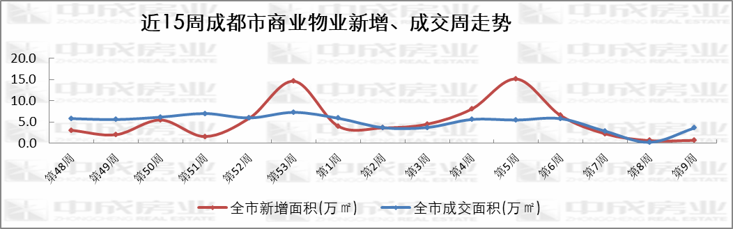 近15周商业成交走势来源:成都中成房业