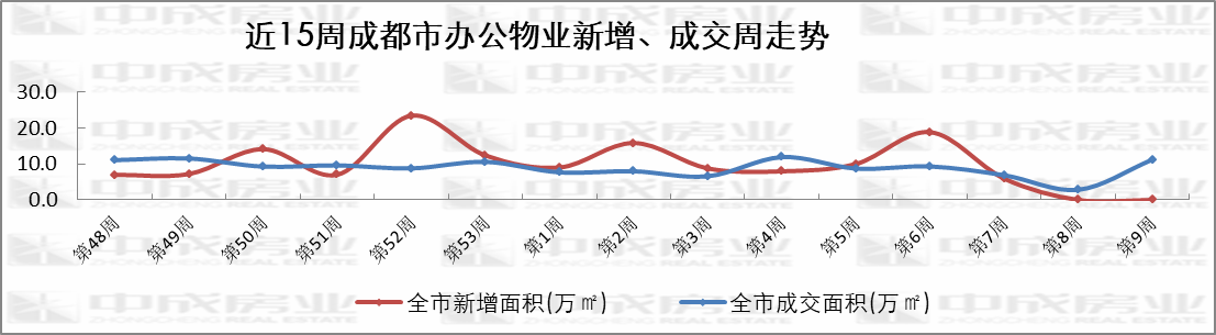 近15周办公走势来源:成都中成房业