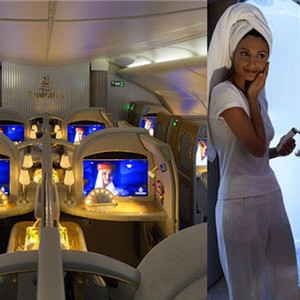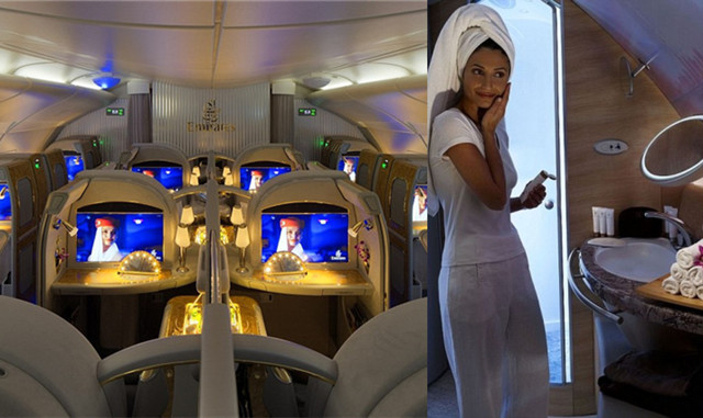第三名:阿联酋航空公司头等舱,头等舱乘客可以享受到空中淋浴。
