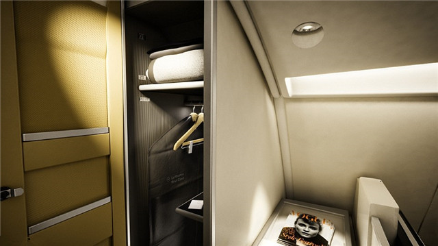 汉莎航空还会为头等舱乘客提供一个小衣柜和时尚杂志VOGUE。