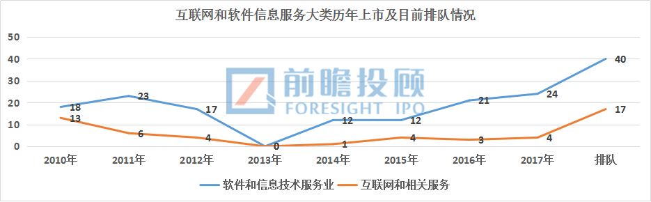 据wind数据统计,软件和信息技术服务业&互联网和相关服务业:分别有40家和17家正在排队。