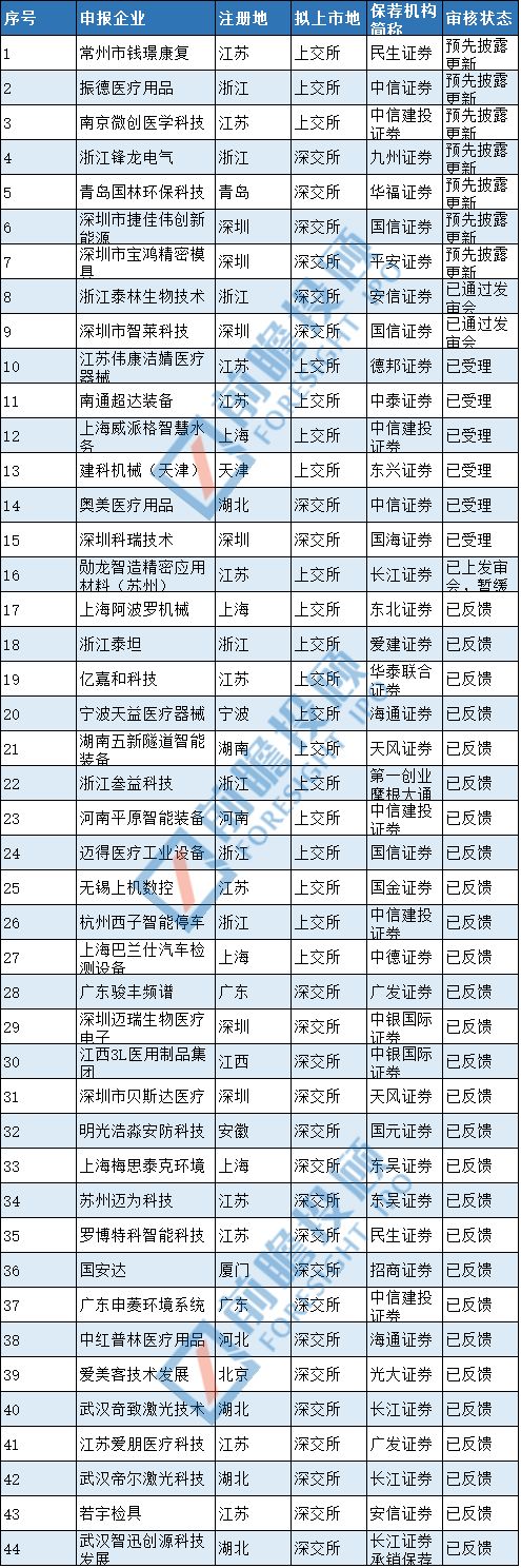 第二梯队:常州市钱璟康复、振德医疗用品、南京微创医学科技、浙江锋龙电气、青岛国林环保科技、深圳市捷佳伟创新能源、深圳市宝鸿精密模具,已经预披露更新,将进入上会阶段。