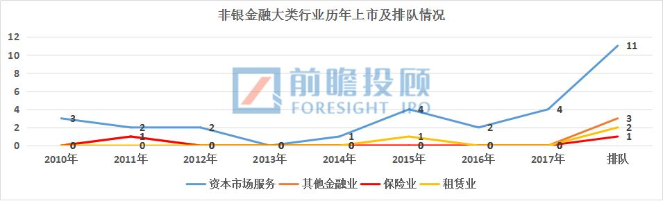 2016年以来,非银金融业(主要包括证券、期货、保险、租赁、资产管理业、其他金融业等小类) IPO的脚步开始重新加速。