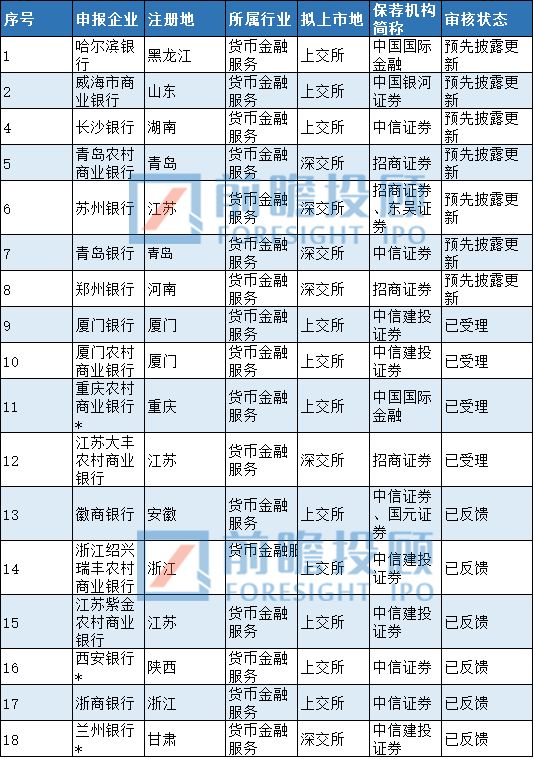 银行业:IPO家数再刷新记录,18家银行冲刺A股