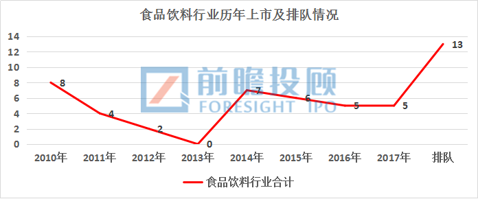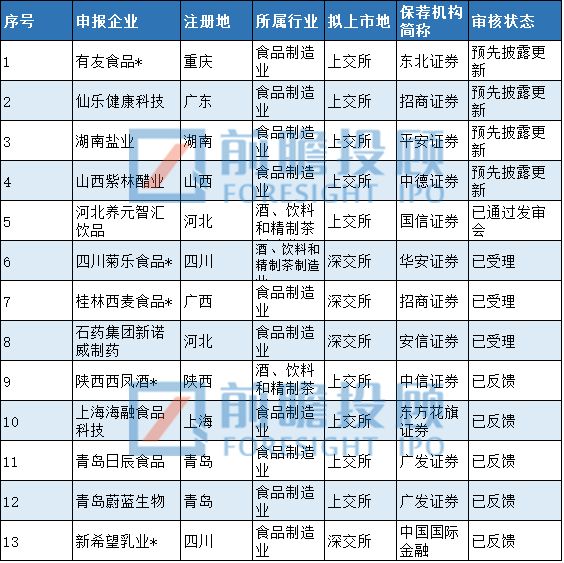 食品、饮料大类【食品制造业&酒、饮料和精制茶制造业】:目前共13家正在排队