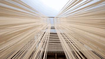 一挂160根的拉面,能拉到3米,银丝倾泻,接受阳光和空气最后的塑造。