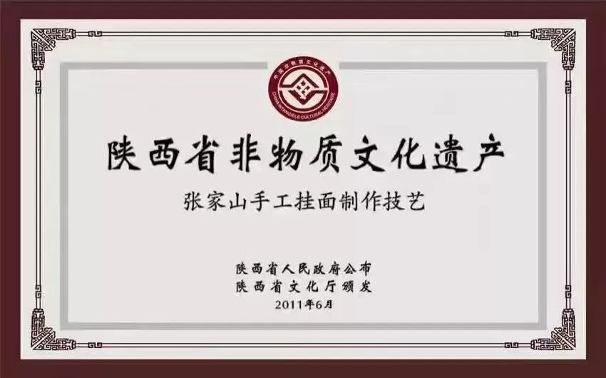 2011年,“张家山手工挂面制作技艺”被列入陕西省非物质文化遗产。