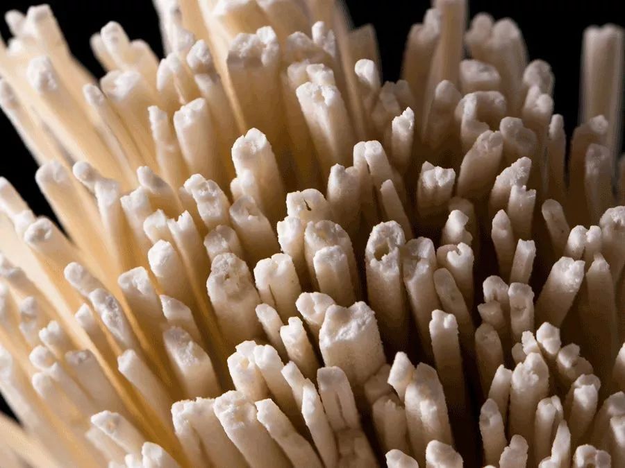 所谓“茎直中通”,是指每根挂面的横切面在发酵过程中都产生了针尖般小孔,空心挂面亦由此得名。