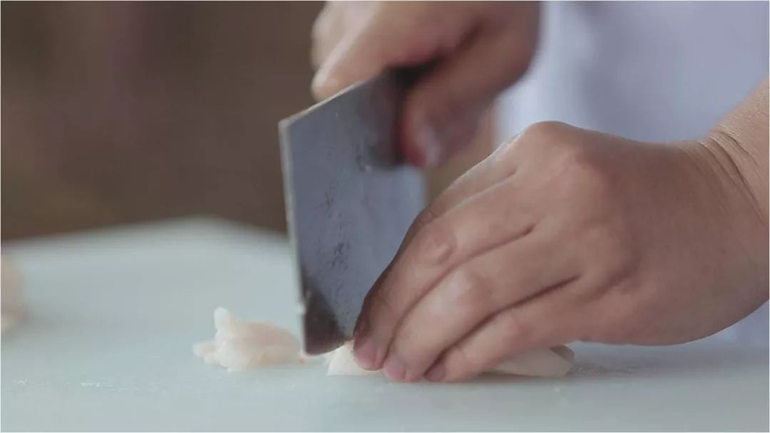 依照肉的纹理,最大程度保持肉的弹性。