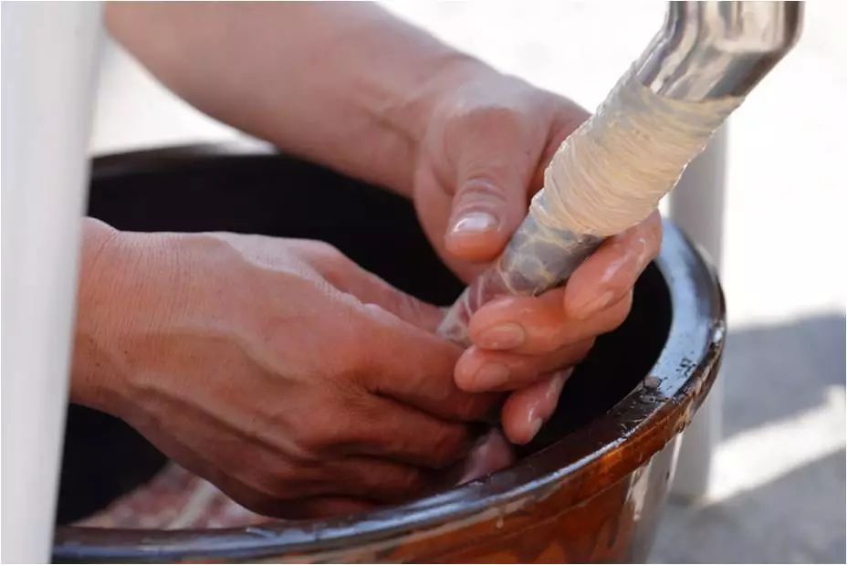 陕北空气干燥,水分蒸发快,故绕面的速度是成败的关键。