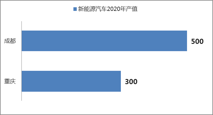 图:重庆、成都2020年新能源汽车产值目标(单位:亿元)