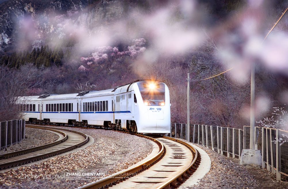 专门前往居庸关拍摄这辆开往春天的列车。