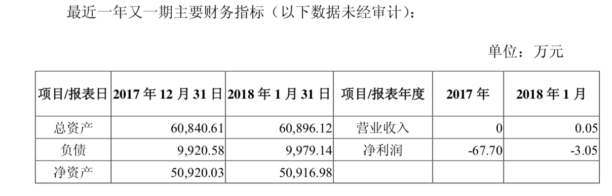 值得注意的是,在上述两家公司中,海岛物流的业绩处于亏损状态。财报显示,海岛物流2017年营业收入为0元,净利润为-67.70万元;2018年1月营业收入为0.05万元,净利润为-3.05万元。截至2018年1月31日,海岛物流总资产为6.08亿元,负债9920.58万元,净资产为5.1亿元。