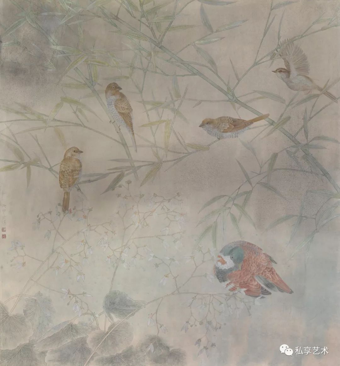 江宏伟作品 竹影山雀 97x89厘米 2016年