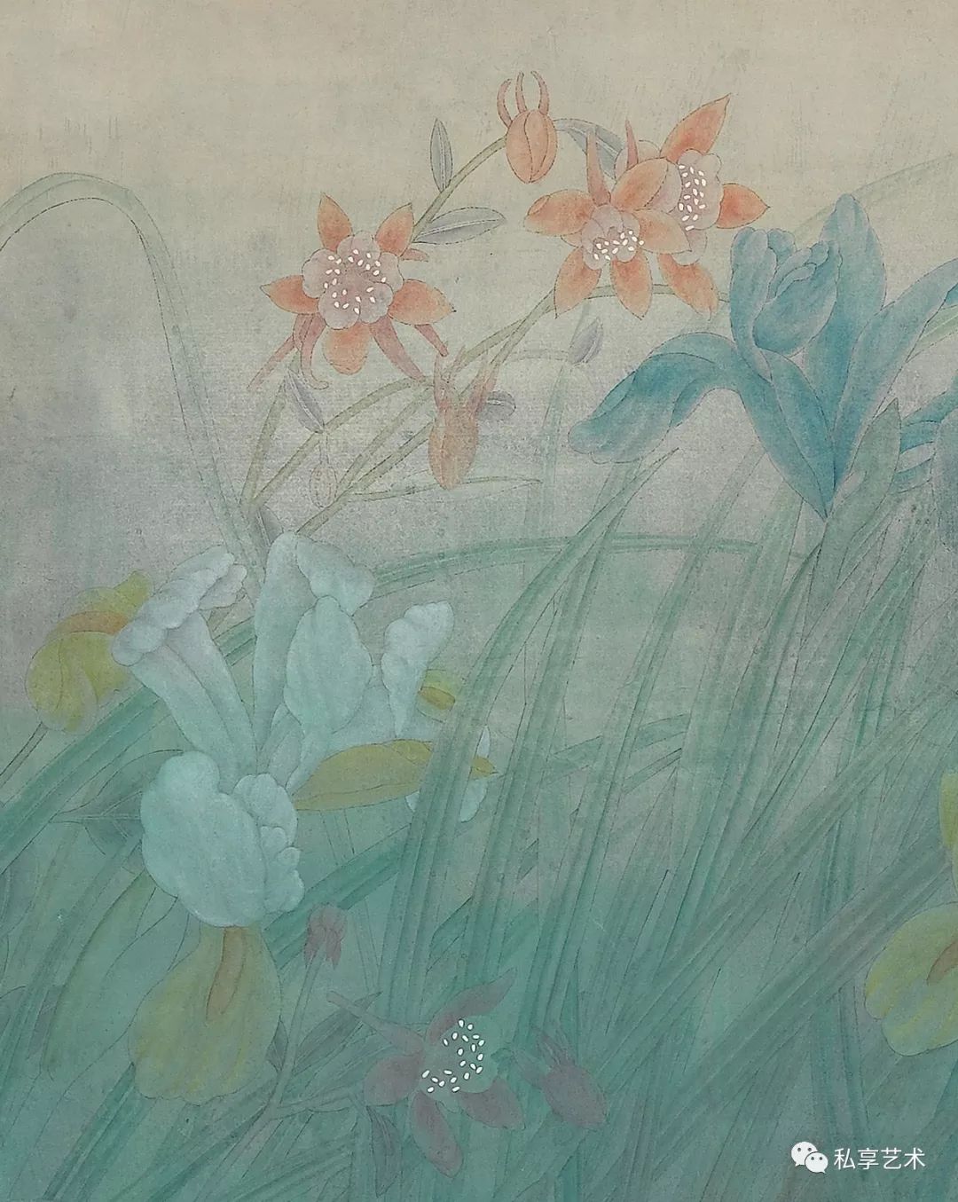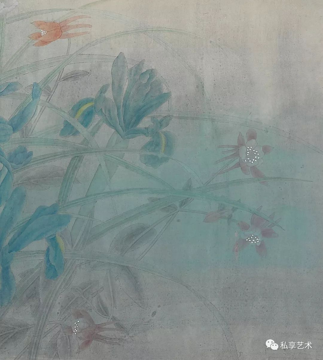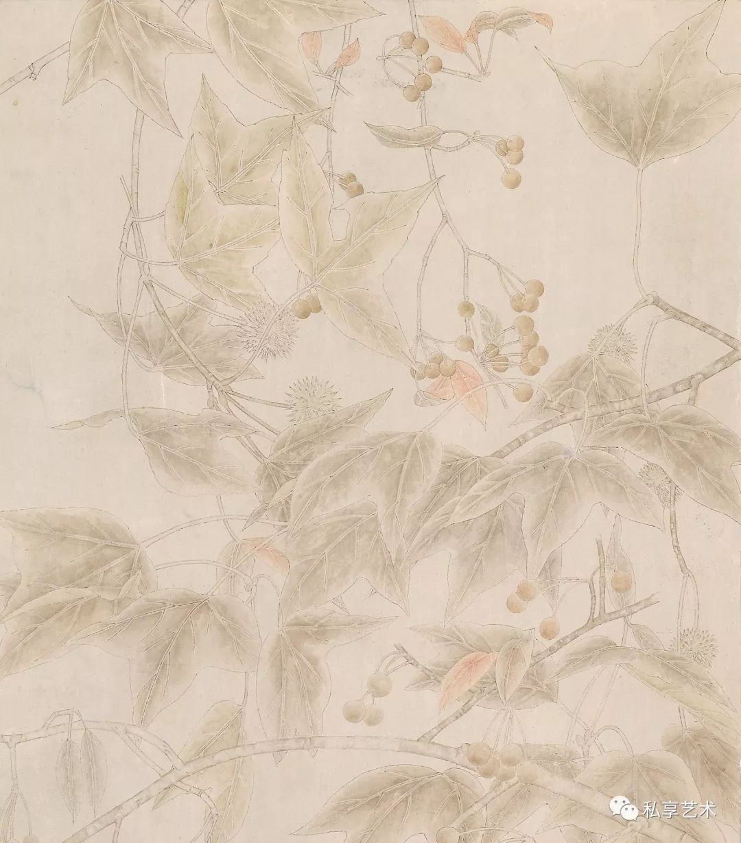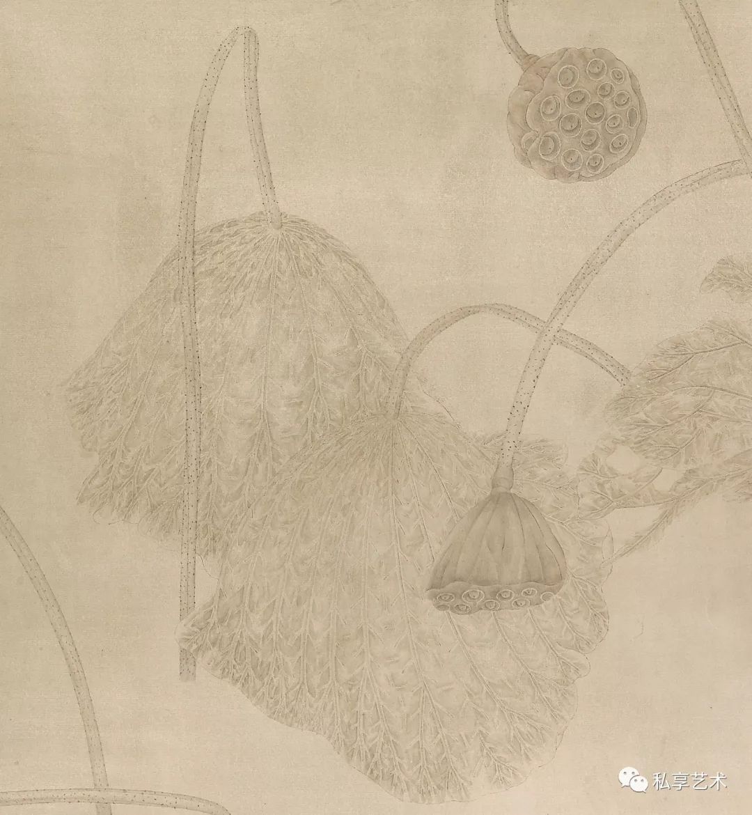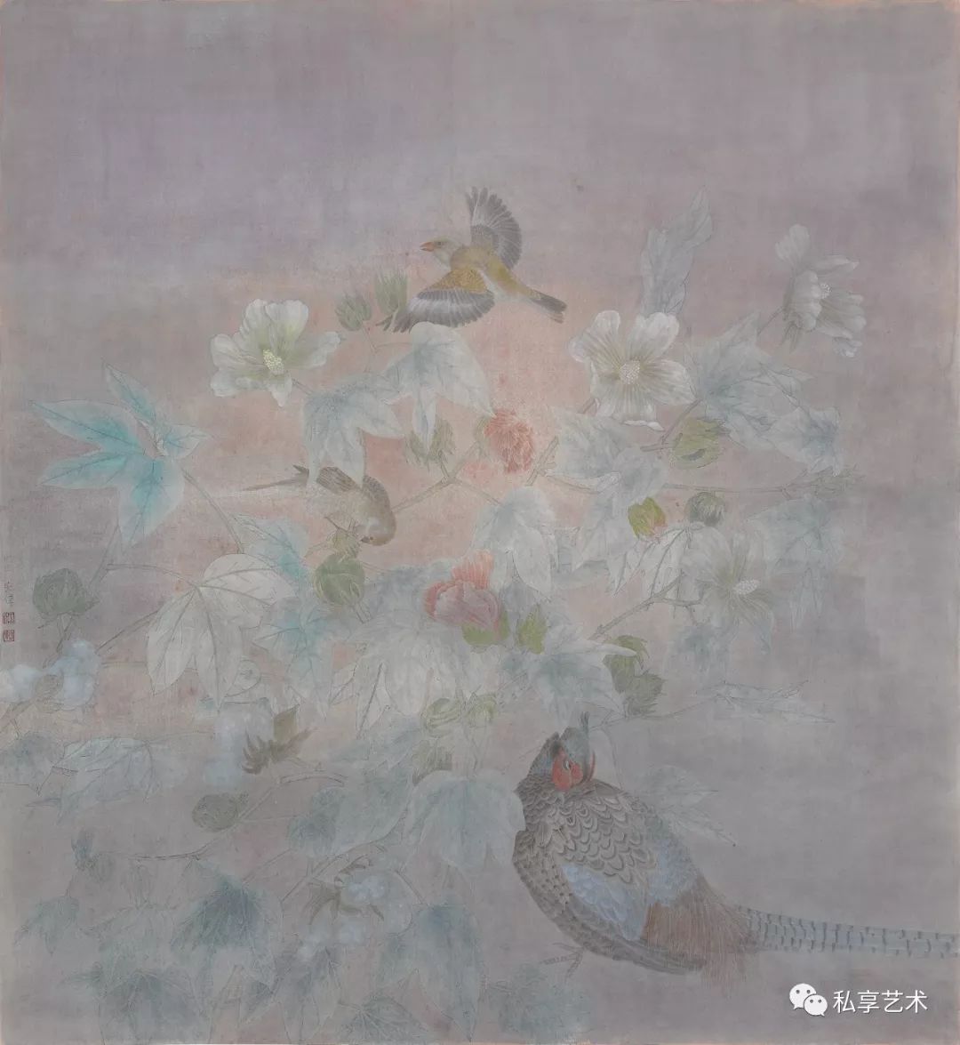 江宏伟钟情于宋画,忘情于自然对象,画意悠远;风格静谧优雅,墨色交融,具有很高的格调。他以洗染为主的画法,丰富了工笔画的表现力,形成了工笔画的新风貌和新格局。作为江宏伟塑造工笔画风的决定性因素,洗染法的基本特点是通过洗染把画面朦胧化,朦胧的「陈旧」感造成了时间感,也带来了意境和格调的变化。而首创洗染法,使得江宏伟对这一画法的理解与使用方式把握得更深入,并因其对精致雅格和心物相融之情调的追求,形成且保持了一种特殊的韵味。反映到视觉印象上,他的创作沉静而温润,恬淡且深邃,画中统一而深邃丰富的调子,犹如时光侵蚀而蒙上的迷离的灰褐色,呈现出一种朦胧而细腻的美感。