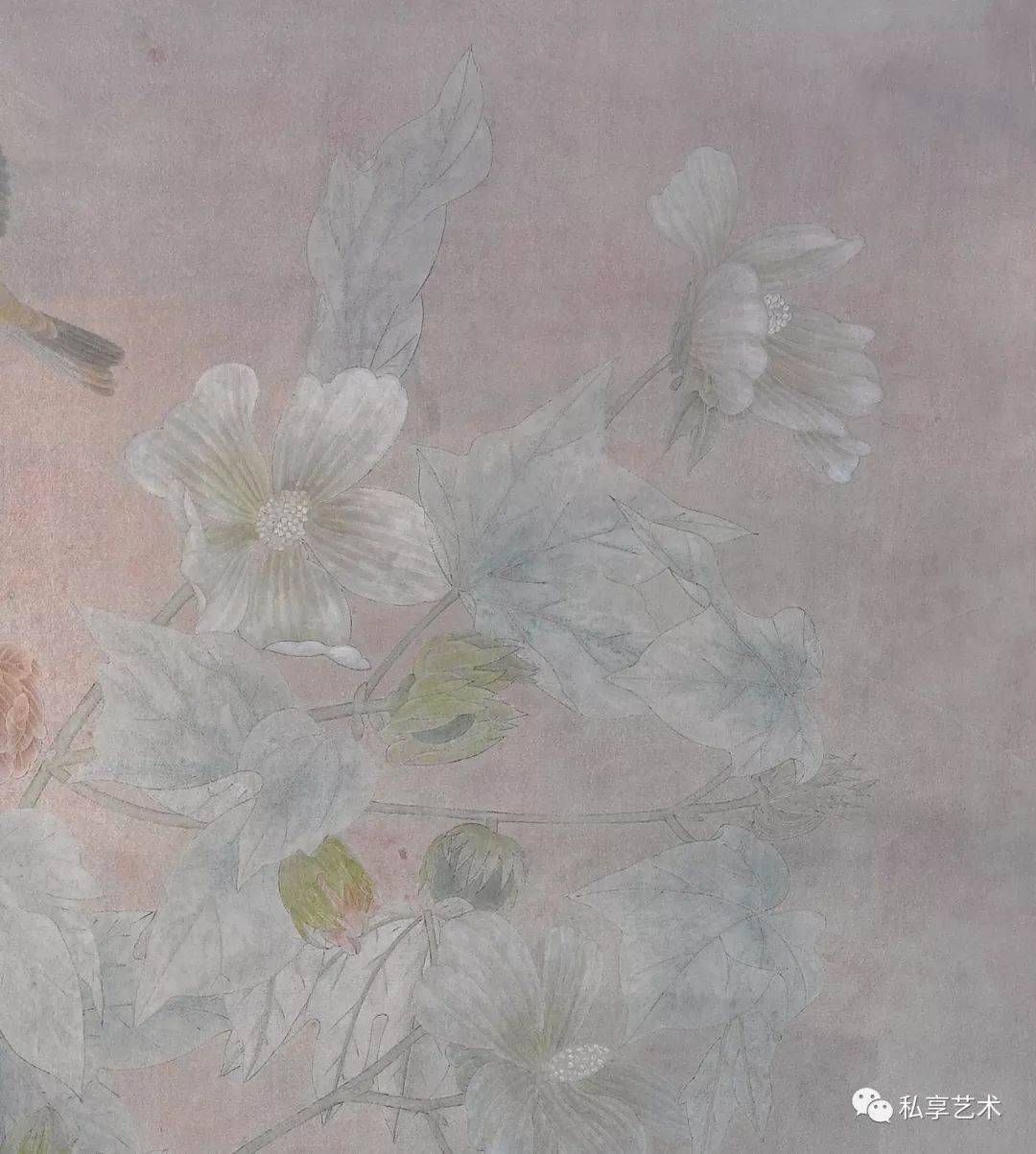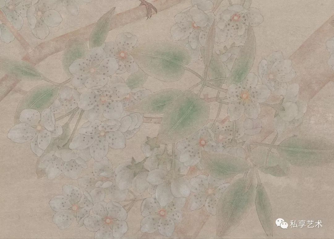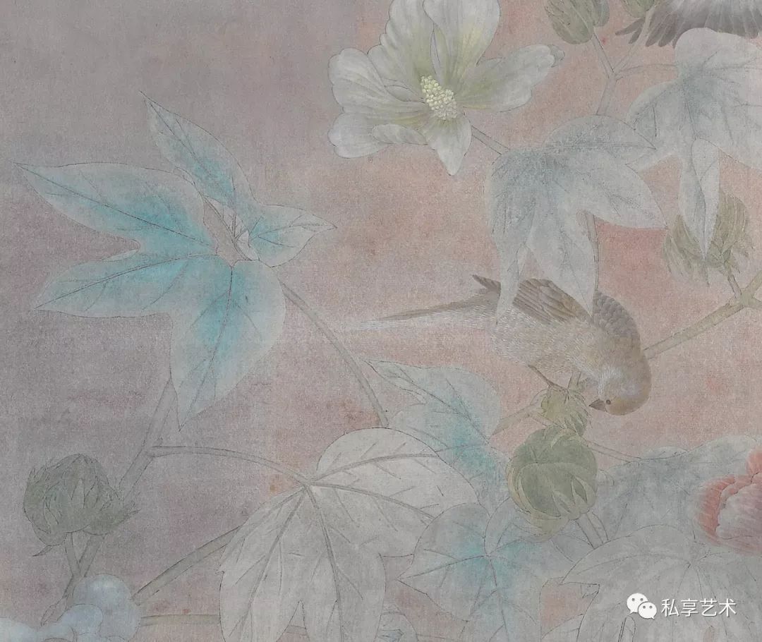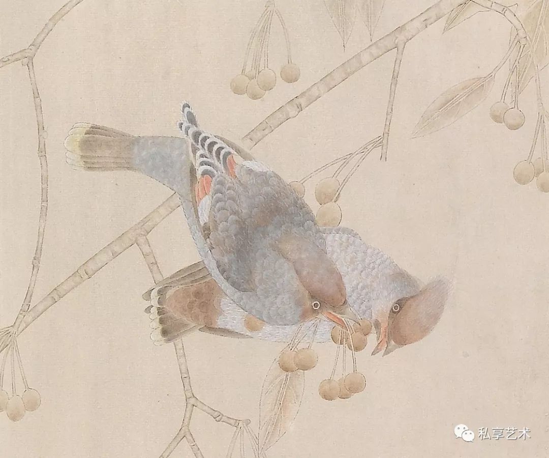 我被一只羽翼美丽的鸟所吸引,于是精心地刻画,不停修正,当一只鸟呈现了,园中的老石榴也果熟了,摘下一枝,在书案前慢慢摆弄使其与鸟适配;空隙间又填入了紫薇,因为湖边的几枝还开着花,紫白相杂,碎碎密密的,数日后画成立了。——江宏伟