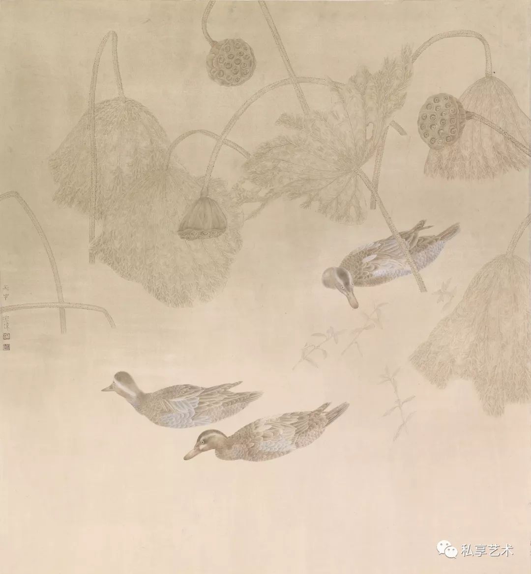 江宏伟作品 秋水戏鸭 97x89厘米 2016年