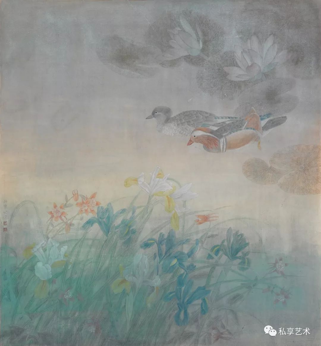 江宏伟作品 鸢尾鸳鸯 97x89厘米 2016年