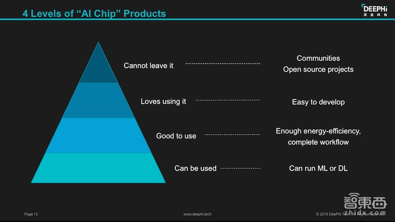 国内明星AI芯片初创企业深鉴科技联合创始人&CEO姚颂认为,每家AI芯片公司都必须成为一家软件&系统公司。因为在AI芯片当中,芯片本身只占1%,剩下99%是完整的系统和软件,AI芯片的竞争护城河远超于芯片本身。姚颂说,深鉴科技的团队从2012年开始在清华做AI芯片相关的研究,除了设计处理架构外,还研发多种行业应用。