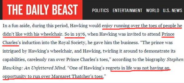 《野兽日报》关于霍金热爱轧脚趾头的报道