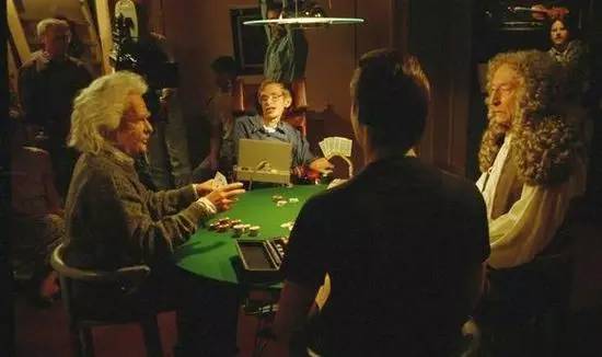 1992年霍金首次“触电”是在《星际迷航:下一代》中客串自己,与扮演牛顿、爱因斯坦的演员一起打牌。