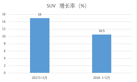 而更让长城担忧的可能是,SUV市场正在进一步放缓增速。2018年前两月,中国SUV市场累计零售量为166.6万余辆,同比增长10.5%,远低于2017年同期增速。
