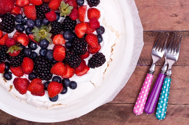 P:奶油蛋白甜饼(Pavlova) 这种以蛋白为基础的甜点起源备受争议。蛋白酥、奶油和大量的水果是关键的配料,尽管没有硬性规定要包括什么。居住在热带地区的外籍人士常常抱怨,要得到一份像样的蛋白饼是多么具有挑战性,因为潮湿的天气会使它变得柔软和粘稠,所以这类甜品是一种难得的享受。