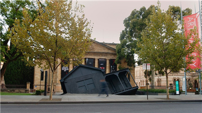 Ian Strange设计的“Landed”位在南澳美术馆门前,是2014年澳大利亚艺术展上的一个作品,像是一个从天上掉下来的哥特式建筑。