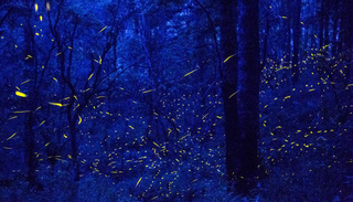 单个的萤火虫像是在森林中四处飞舞的黄色光点,有节奏地一闪一闪。成群结队出现时,光团涡流一般的它们则好像飞在眼前的精灵,明明近在咫尺,但就是抓不住。导游让大家保持安静,但没人理会,尤其是孩子——他们发出尖叫,兴奋地和彼此讨论着眼前的美景。
