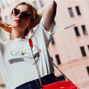 虽然大部分人不愿花几千块去买件T恤,但对经常消费奢侈品的人来说,这不是个值得详细解释的行为。全身上下单品没有低于过3000的Kate就是个常购买奢侈品的女孩,她在Gucci白色T恤最火的时候买入,原因只有一个——好搭配。“其他没多想,和我在Gucci买的裙子相比,这件T恤便宜多了。”