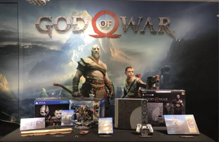 活动现场被布置成了“战神”的主题风格,将在4月20日正式发售的PS4 Pro限定机与收藏版游戏实物已被摆出供媒体拍照,另外还有两位还原度颇高的Coser,扮演奎爷和他的儿子。