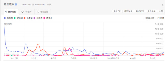 但在两年后,“人气王”的搜索指数也跌倒了7000的水平。