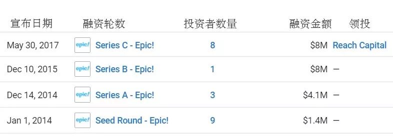 ▲Epic! Creations, Inc.融资记录,来自美国数据平台CrunchBase。