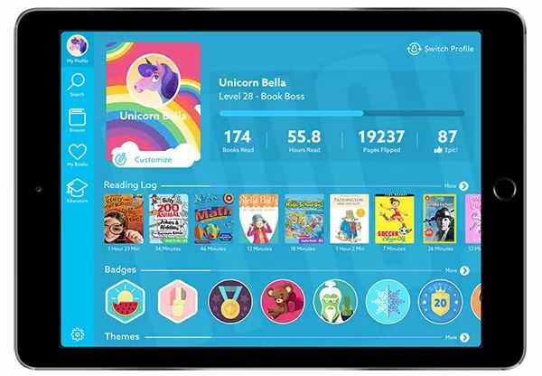 于2013年问世的Epic儿童数字图书馆,凭借数量繁多、种类丰富、扎实优质的电子书产品及轻游戏化的用户体验,在这一拥挤的赛道上超越对手,成为用户规模超过500万的领先平台。同时,这个家庭、学校场景通杀的电子童书馆界Netflix在收费、营销及内容合作模式上另辟蹊径,值得借鉴。