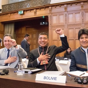 3月19日和20日,荷兰海牙国际法庭开庭审理玻利维亚与智利的太平洋出海口争端一案,莫拉莱斯亲自带领玻利维亚代表团出庭,该国民众也对这一举国瞩目、旷日持久的案件翘首以盼。在玻利维亚各大城市,成千上万市民通过大屏幕直播关注庭审,该国印第安土著萨满也在广场上进行传统祭祀。